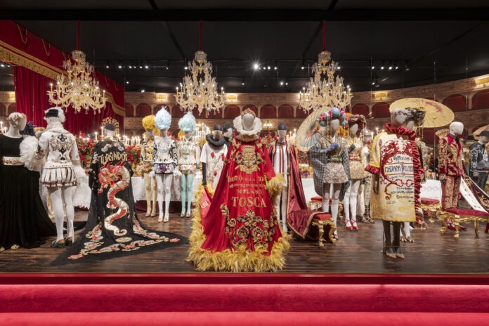 A metà del percorso la moda si congiunge con la musica. L’allestimento riproduce un tipico teatro dell’Opera italiano con platea e palchetti. In fondo un tavolo apparecchiato con un ricco banchetto. Ospiti i personaggi più celebri usciti fuori dalle opere più rinomate: La Traviata, Attila, Aida, Rigoletto e Don Carlo di Giuseppe Verdi; Tosca, Madama Butterfly, La fanciulla del West e Turandot di Giacomo Puccini; Norma e I Capuleti e i Montecchi di Vincenzo Bellini; Cavalleria Rusticana di Pietro Mascagni; Il Barbiere di Siviglia di Gioachino Rossini...