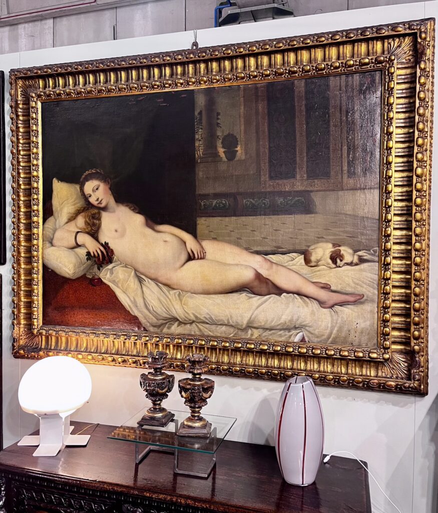 Nello stand di Pasetti si nota una copia della Venere di Urbino di Tiziano. Si nota anche un altorilievo di primo Cinquecento, realizzato probabilmente da un artista del Centro Italia. Il soggetto è il Miracolo di San Gregorio Magno. Protagonista dell’episodio religioso è un frate, sulla destra della composizione, che non crede nella transustanziazione. Viene rappresentata la messa di San Gregorio Magno: durante l’Eucarestia, Gesù appare sull’altare per dimostrare l’incarnazione del suo corpo nell’ostia. Tutto attorno, sono stati inseriti i riferimenti alla Passione come i chiodi o la tenaglia. Il gallo allude alla figura di San Pietro, che rinnega tre volte Cristo. Il gallo stesso poggia su una colonna che rievoca quella al quale è stato legato il Messia per essere fustigato. La scena, inoltre, è incorniciata da un grande arco. Questo elemento architettonico rimanda alla Basilica di Santa Pudenziana a Roma, in cui si dice sia avvenuto questo miracolo.
